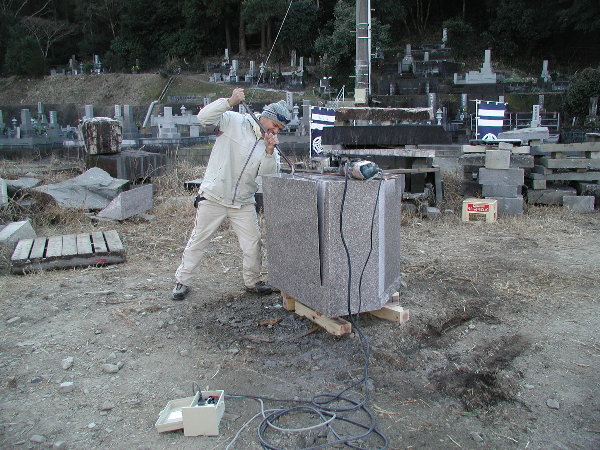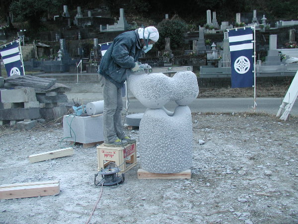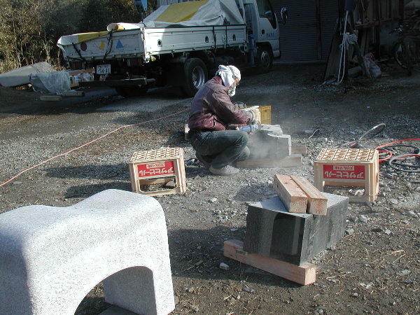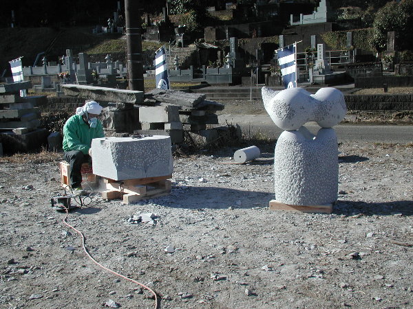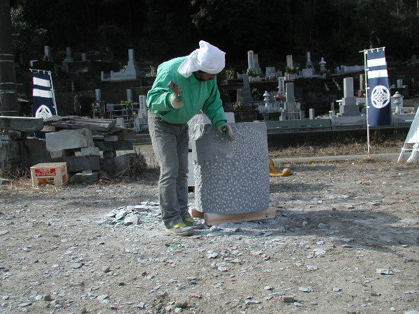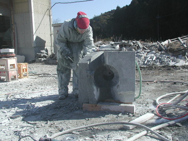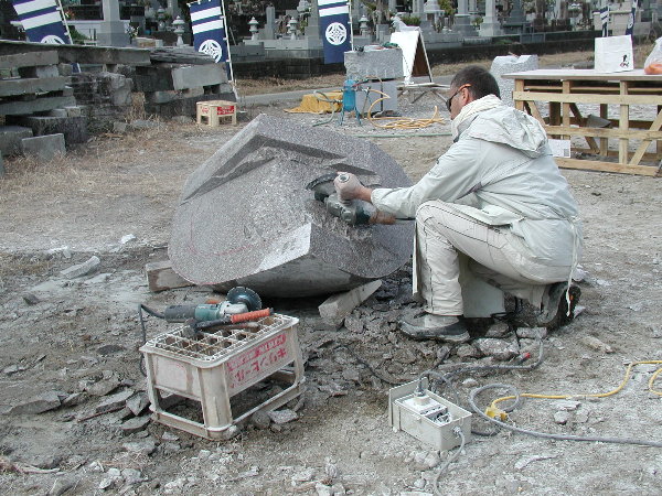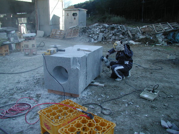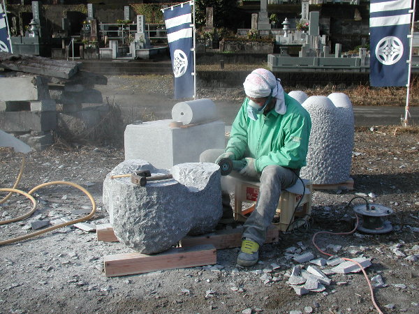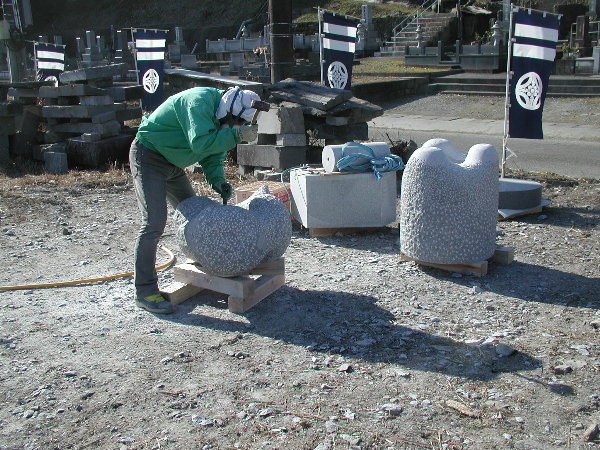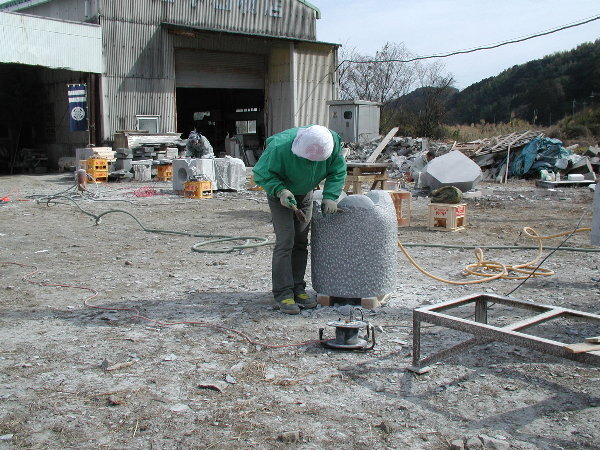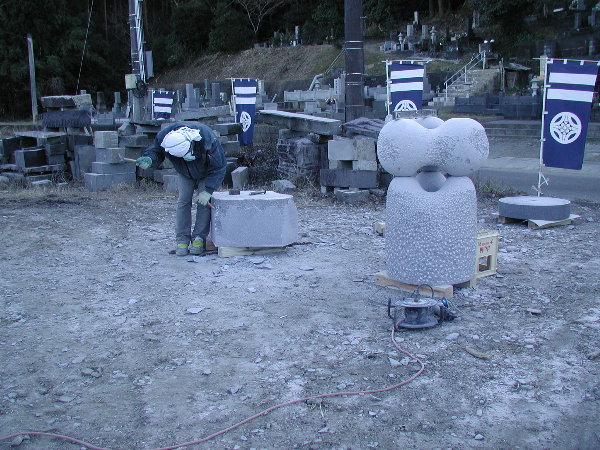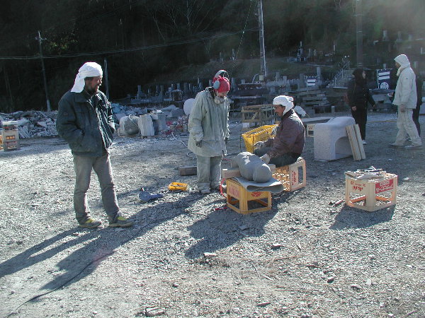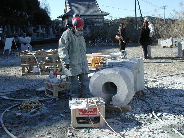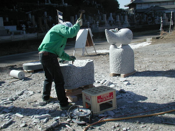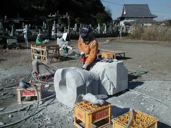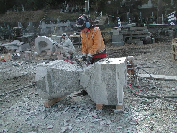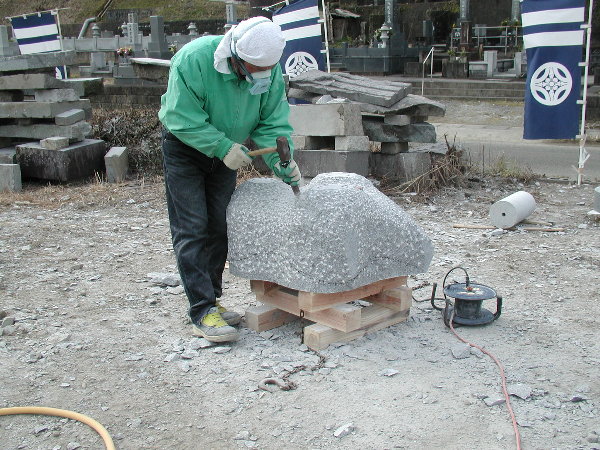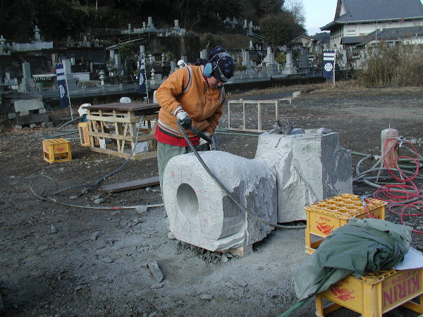 作家4人、町長、商工会議所専務、協議会会長による石割りのセレモニーです。