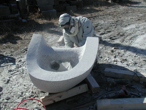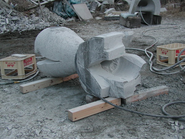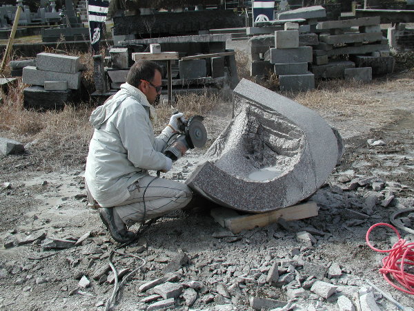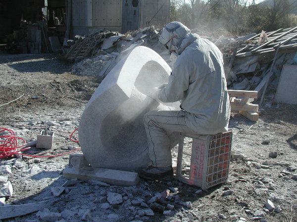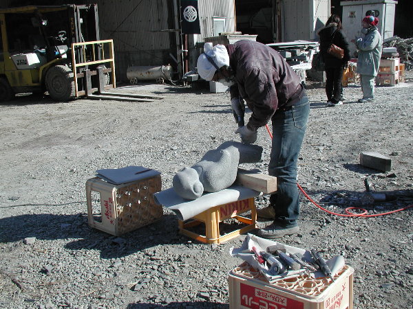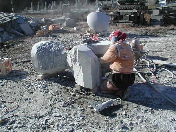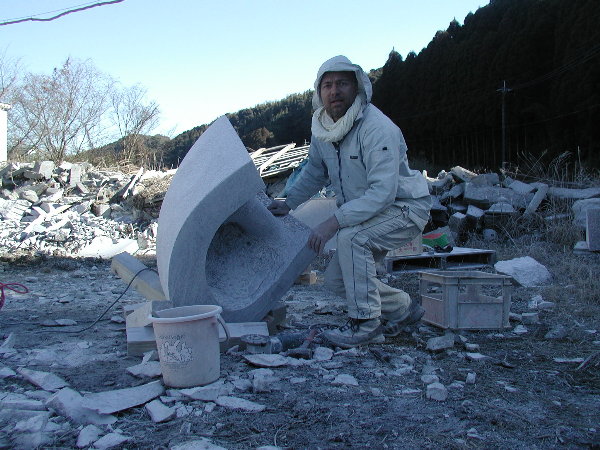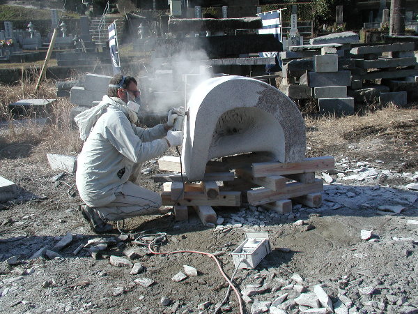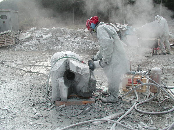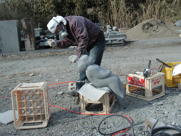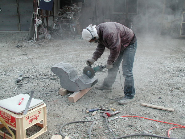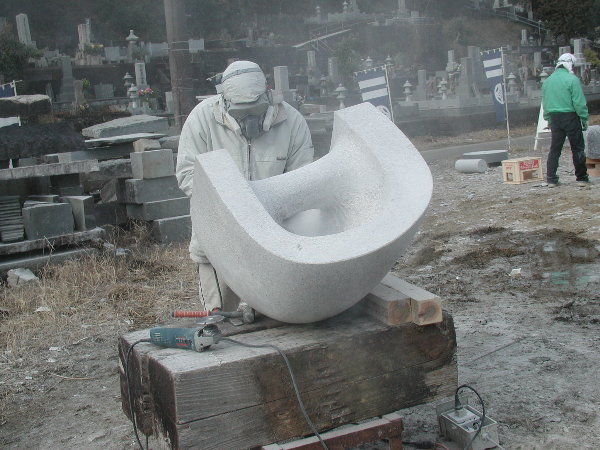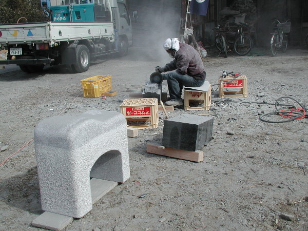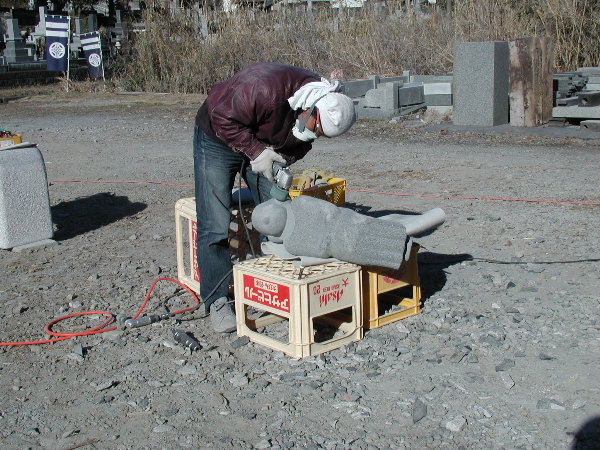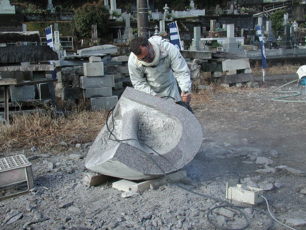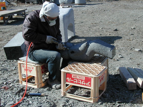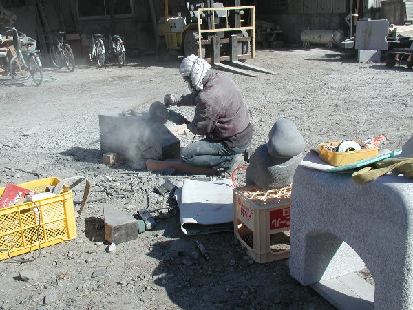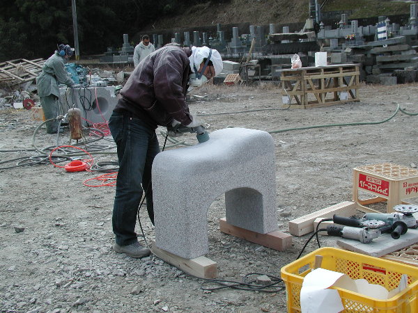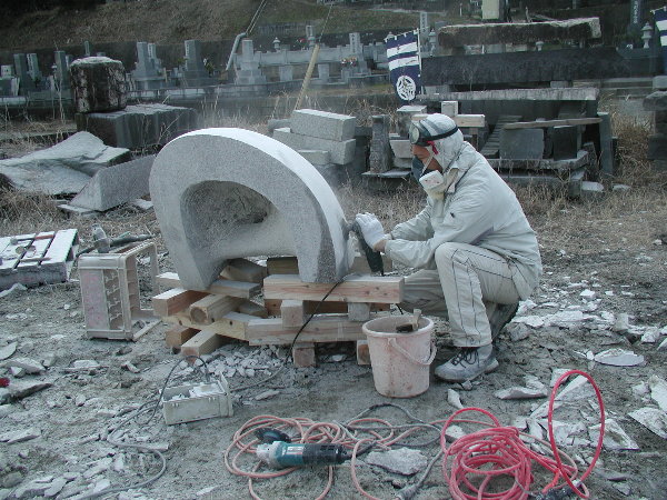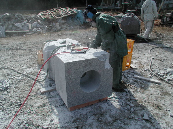 作家4人、町長、商工会議所専務、協議会会長による石割りのセレモニーです。