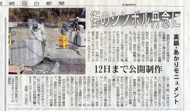 今朝の宮日新聞に公開制作開始のカラー記事を掲載していただきました。