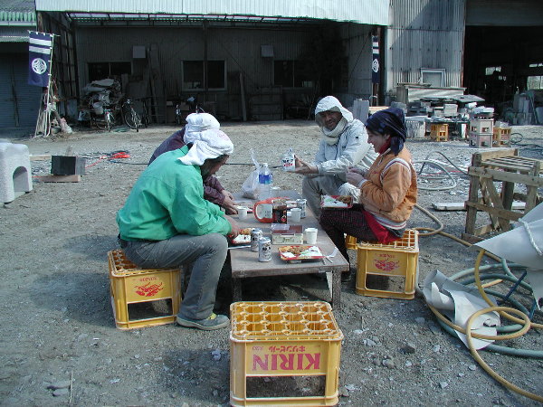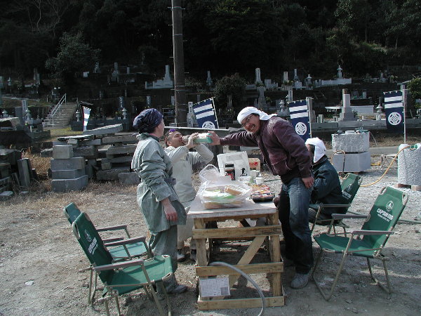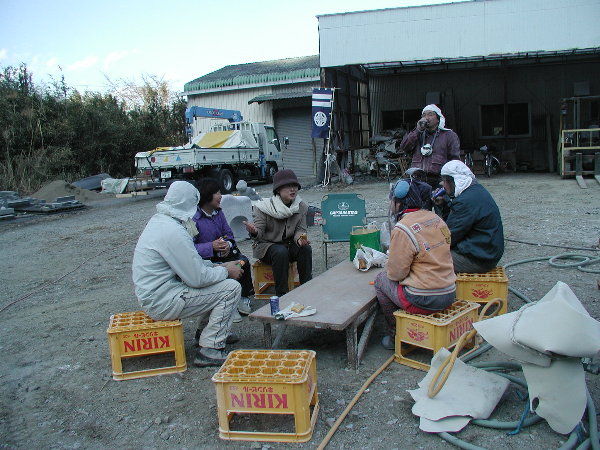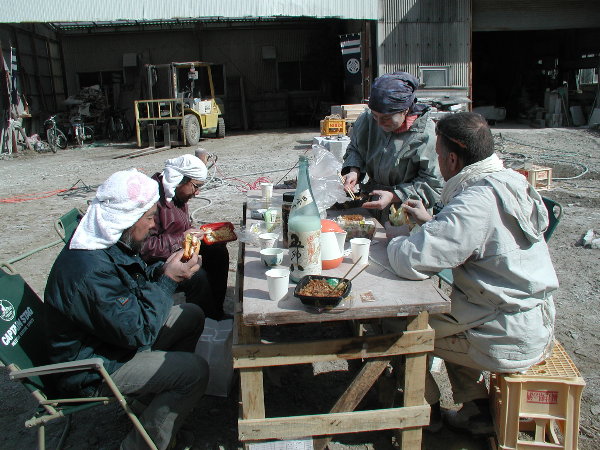 ☆お昼は風もなく暖かかったので、作業場で昼食を摂りました。