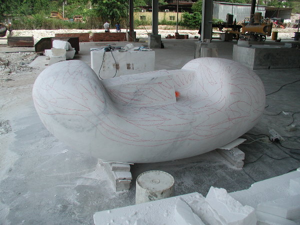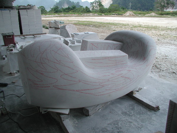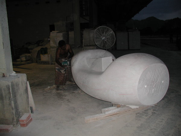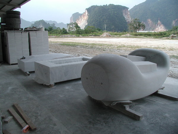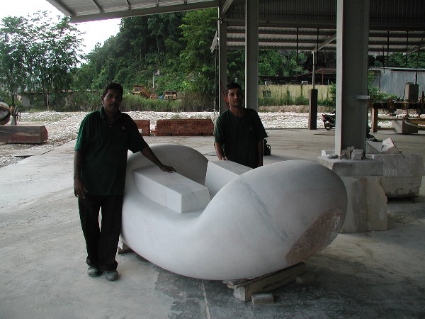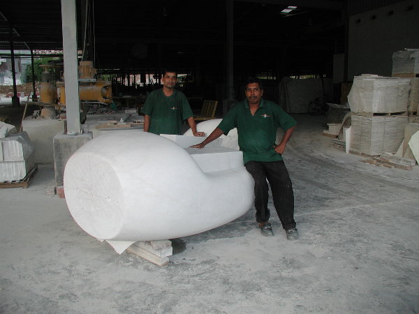 呂社長の剣幕に立ち会っていましたAslamが気を利かして、制作過程で出た石(ペナンへ持っていく)の片付けと仕上げの残っている2作目本体以外の作品の外への移動作業を始めてくれました。