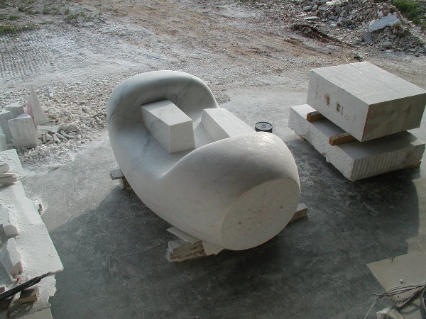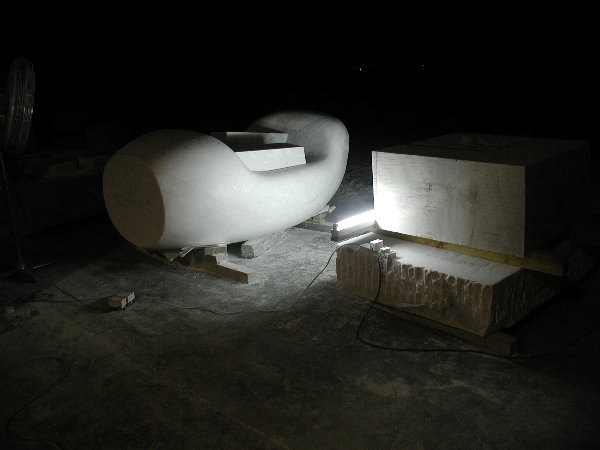 ☆結局、これらの片づけが済み、道具の片付けも済んで石材店を出たのはもう7時半でした。Nasimはシャワーを浴びた体で、私の作品の仕上げ作業にかかってくれました。