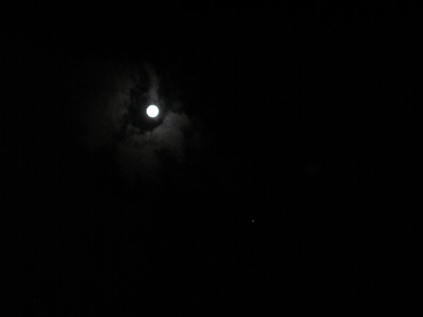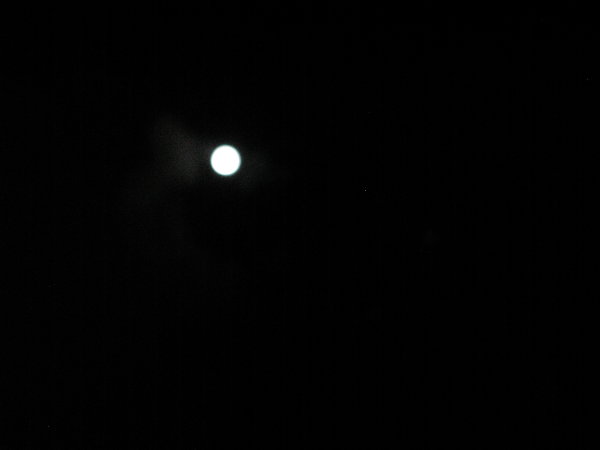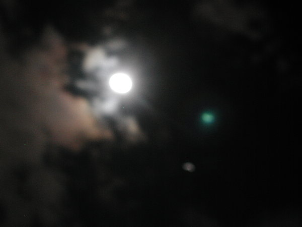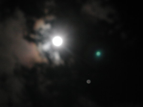 フラッシュを焚かずに撮ったら、満月の右側に不思議な丸いものが2つ。フラッシュを焚いたら何かに反射することもありますが、これはフラッシュなしです。