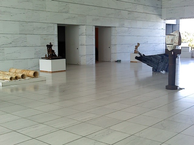背後に芸術祭参加の青木野枝の作品が見えます。