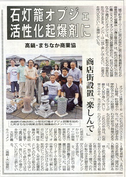 あかりオブジェは高松市牟礼町で行われている石あかりロードの作品を購入して、商店街に設置するものです。