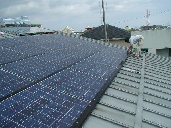 天日パネルの修理が終わってから、ソーラーパネルの補修にかかってもらいました。