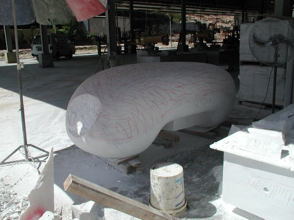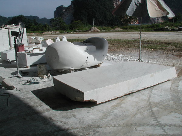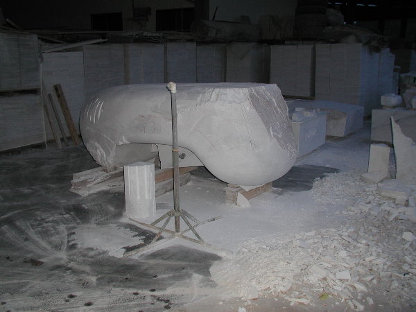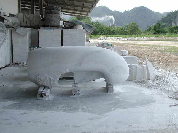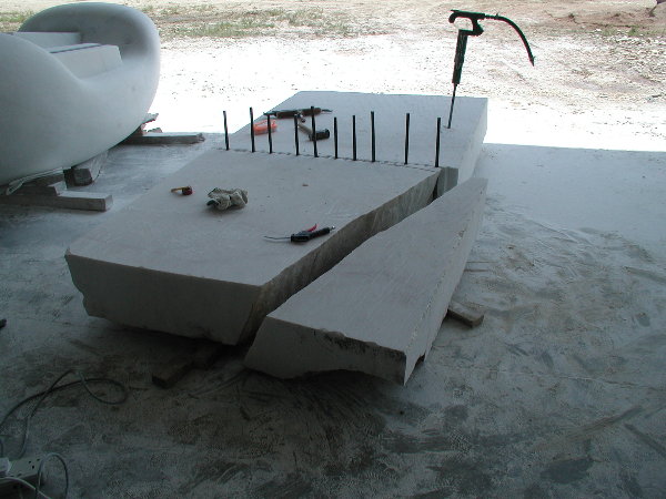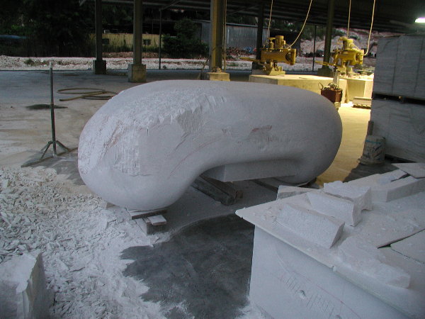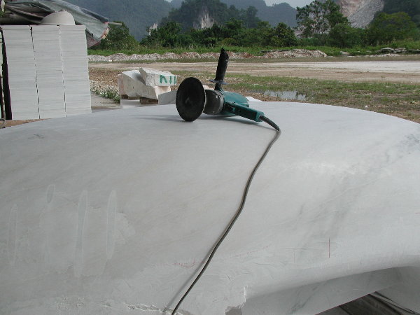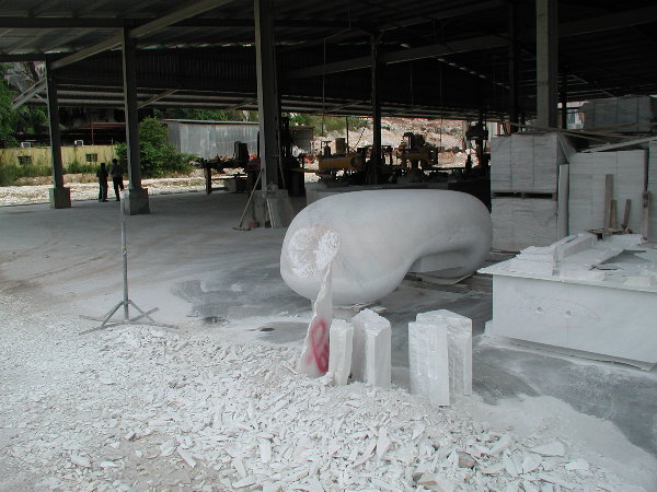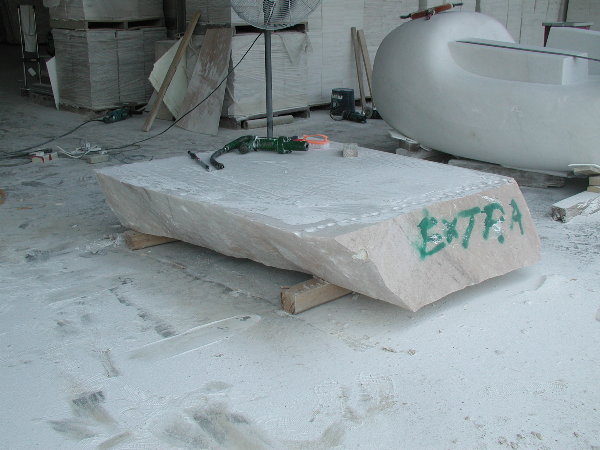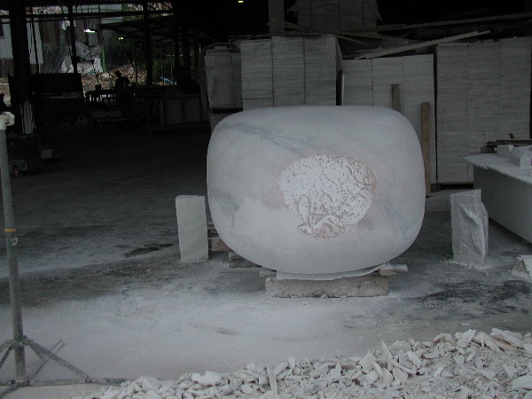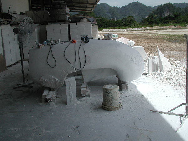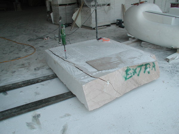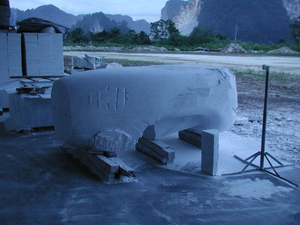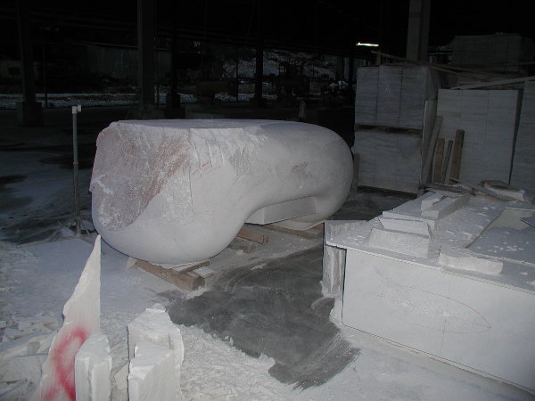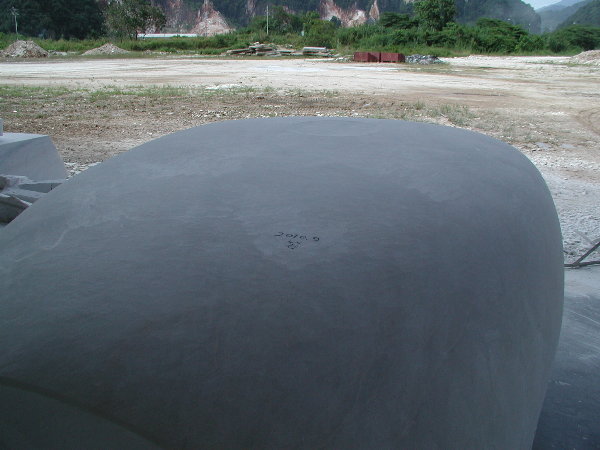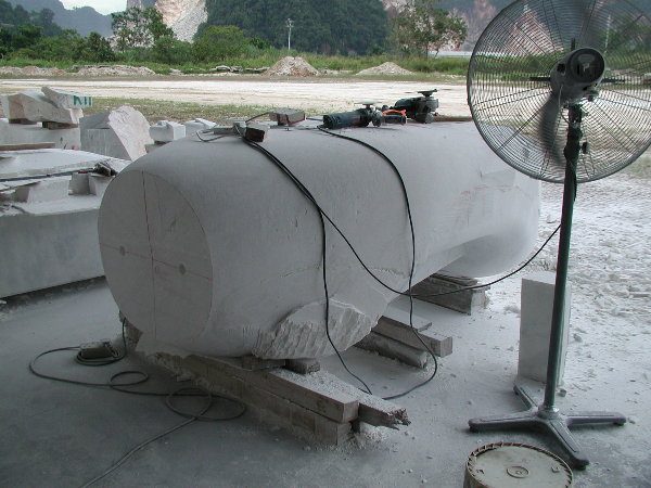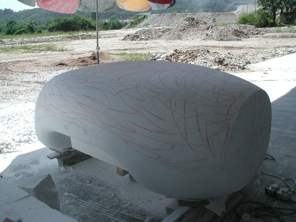 石に線引きをしてエリックと担当従業員と打ち合わせをしましたが、やはり切削作業に3日間かかると言うことでした。
