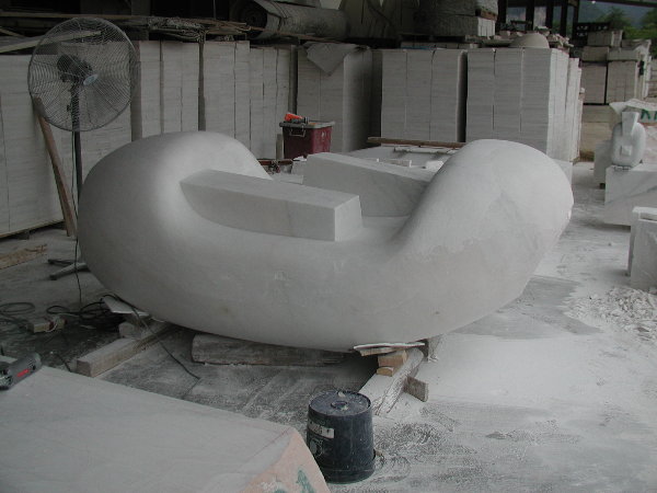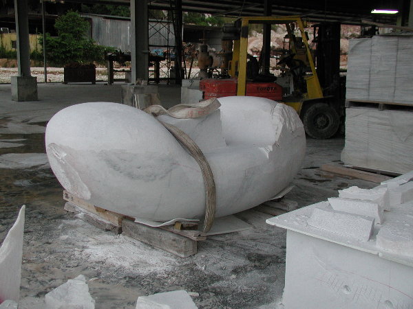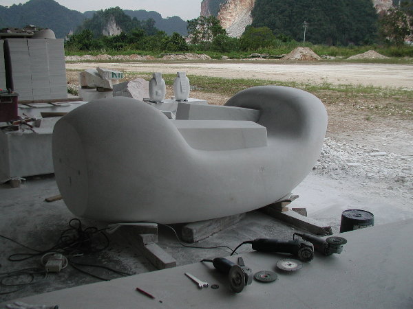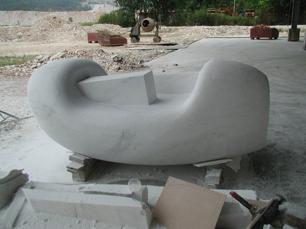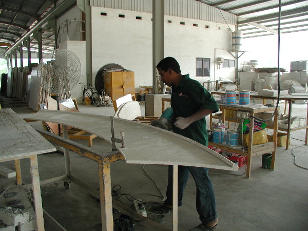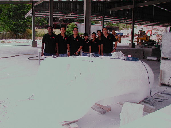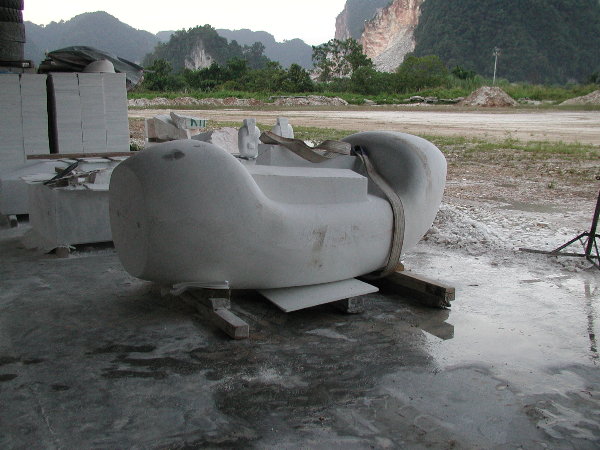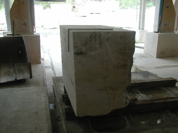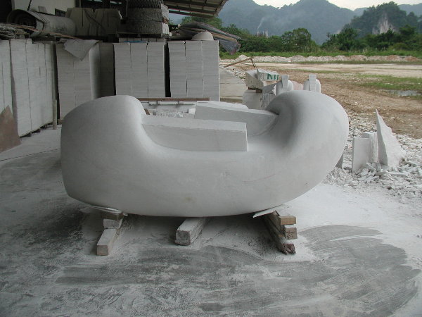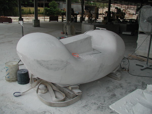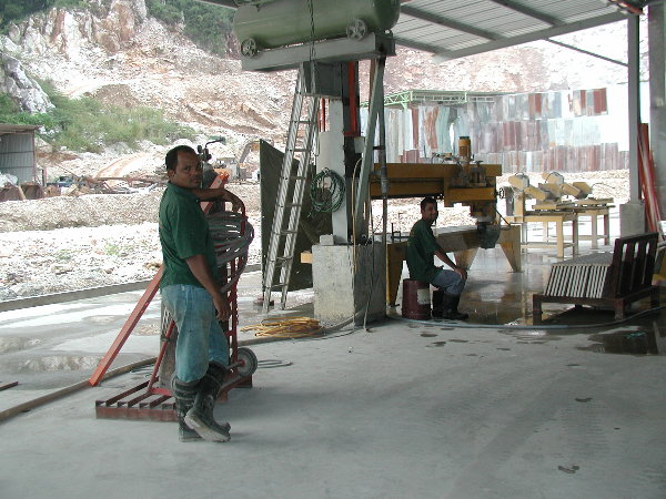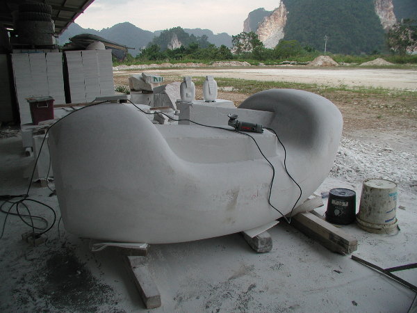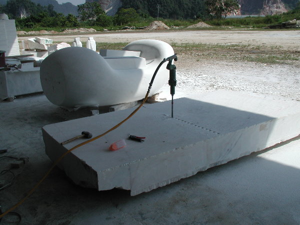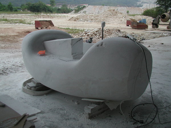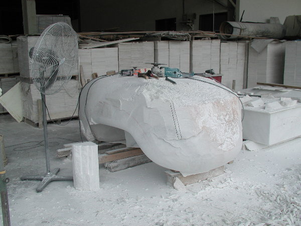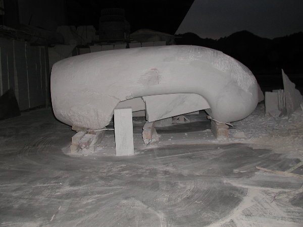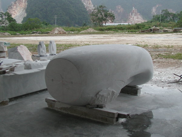 石に線引きをしてエリックと担当従業員と打ち合わせをしましたが、やはり切削作業に3日間かかると言うことでした。