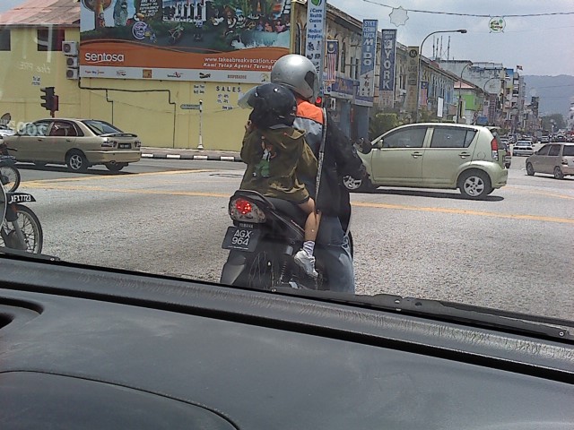 先日は4人乗り(家族)のバイクも見かけました。台湾でもよく見かけた風景ですが。