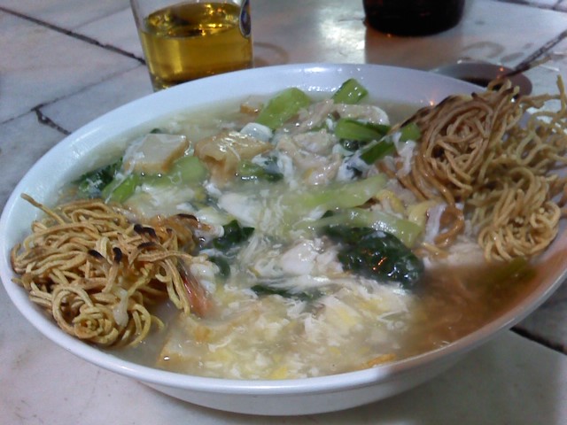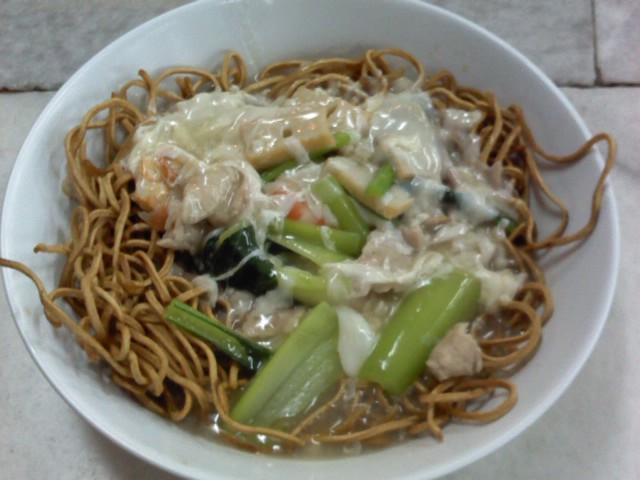 ☆夜は春景色海鮮飯店で先日とは違うメニューの揚げ麺あんかけを頼んだら、ほとんど同じものが出てきました。