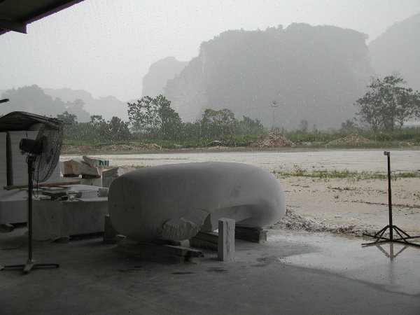 そうなると、本体も今日で方形フォルムの整形が終わる予定が出来なかったので、完成までに後3日、そして台座のルートハンマー作業が丸一日、そして最終チェックや片づけでもう1日、結局15日にならないとイポーのすべてが終わらないようです。