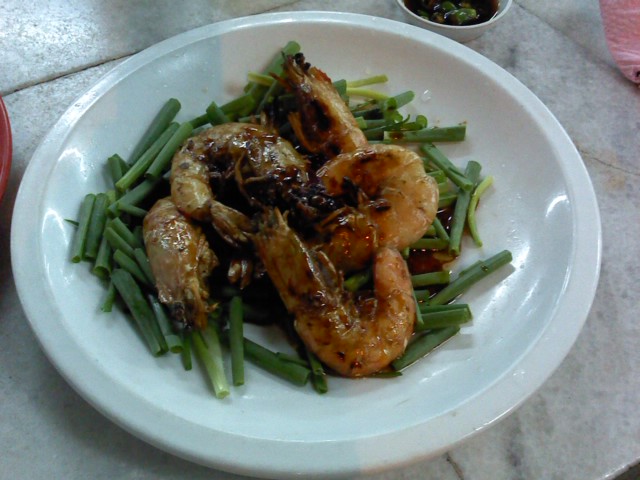 なんと読むのだろう、そして頼んだメニューとどう違うんだろうと思っていると、隣のテーブルの男性がやってきて、”焼き・えび”です、おいしいですか?と日本語で説明してくれました。