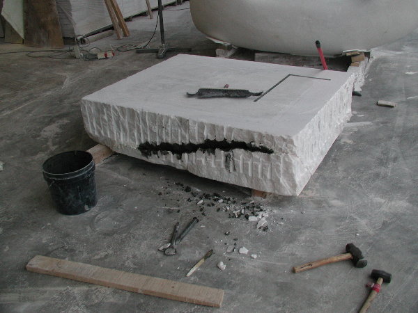 それで予定していた石をチェックしてみたら非常にクラックが多く、そのままでは使い物にならず、もう一つ台座を追加する必要があると判断しました。