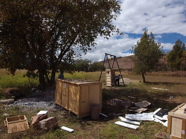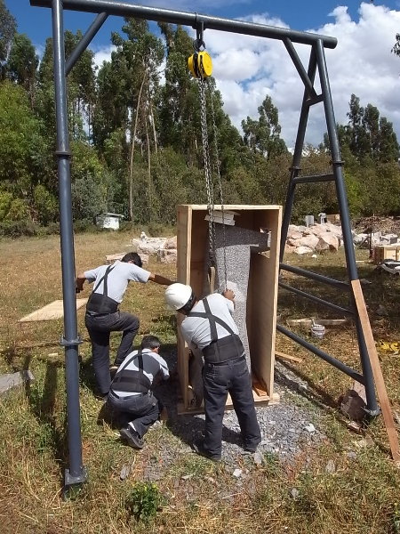 1点が1,5トンぐらいはある作品を7点も梱包するのだから、当然クレーン車が来て作業をするものだと思っていたのですが、6人の作業員が人力の道具を使用し2日がかりで木箱に作品を入れるそうです。