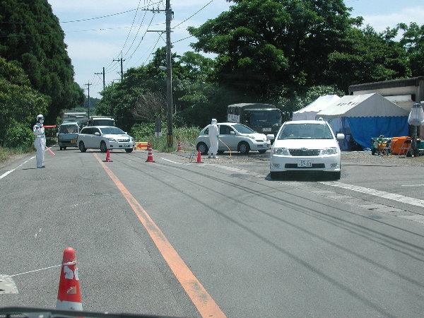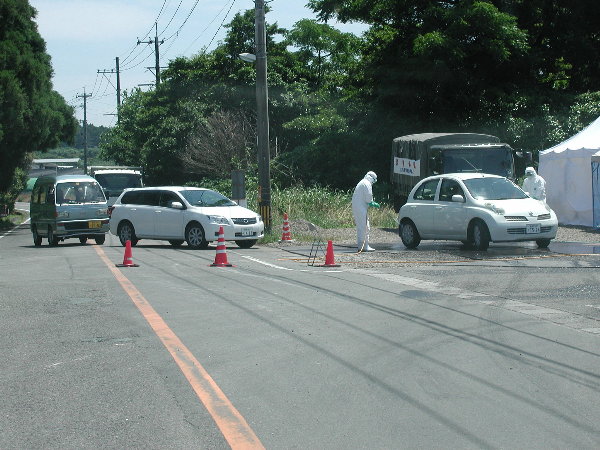 もはや国道10号線を走る全車両が消毒の対象となりました。