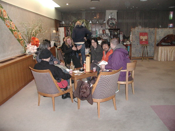 ホテルのロビーで持参の”橘原酒”で2次会です。