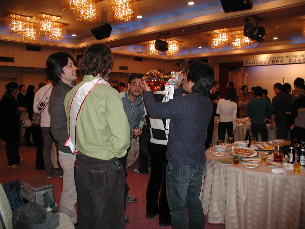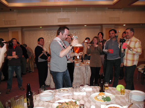 グランプリ・カナダチームのビール一気飲み。