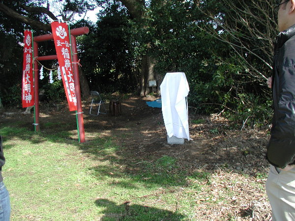 はじめに、今回設置したお仙稲荷大明神由来の石碑を除幕しました。